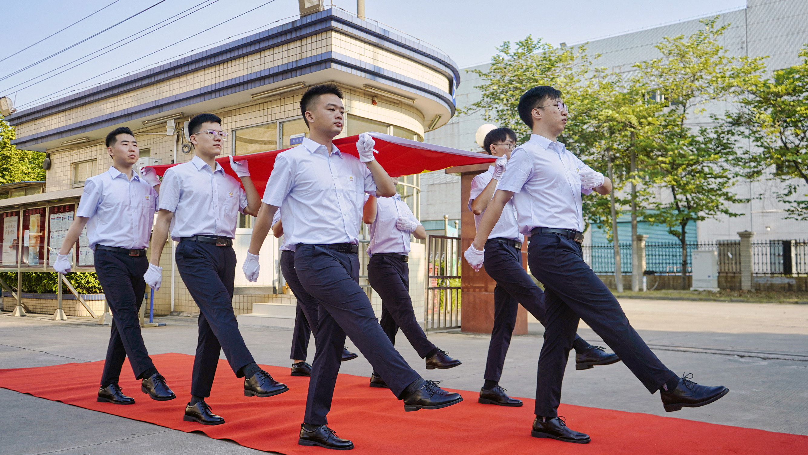 晨曦初照,升旗手與護旗手踏著堅定的步伐,護送鮮豔的五星紅旗走向升旗台。紅旗漫卷,江山如畫,在悠揚旋律中托舉起的五星紅旗,在精品国产亚洲AV无码电影蜜桃人的共同見證下冉冉升起。