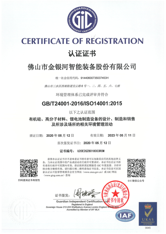 2020年5月,精品国产亚洲AV无码电影蜜桃“環境管理體係”完成評審並符合GB/T24001-2016/ISO 14001:2015,認證範圍包括91精品国产乱码久久蜜桃夜色、高分子材料、鋰電池製造設備的設計、製造和銷售及所涉及場所的相關職業健康安全管理活動。 精品国产亚洲AV无码电影蜜桃一直以來都積極推進生產和管理符合環境管理體係,更是響應“十四五”規劃,在研發和生產工作上,以降低汙染、節能減排為基本準則,嚴守生態環保底線,體現了精品国产亚洲AV无码电影蜜桃的社會責任,勇當環保標兵,積極努力推進和改善生態環境命運共同體。